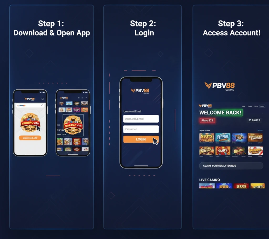 Việc đăng nhập vào PBV88 thực ra khá dễ dàng. Người dân Việt Nam vẫn làm điều đó mỗi ngày trên điện thoại, laptop hoặc máy tính bảng — thông qua trang web hoặc ứng dụng. Dưới đây là cách thông thường mà hầu hết người chơi thực hiện.